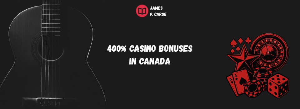 A 400% Casino Bonus is a deposit match promotion where the casino adds four times the amount of your deposit in bonus funds. For example, deposit $100 CAD, and youâll get an extra $400 CAD to play with â meaning your total bankroll becomes $500 CAD.